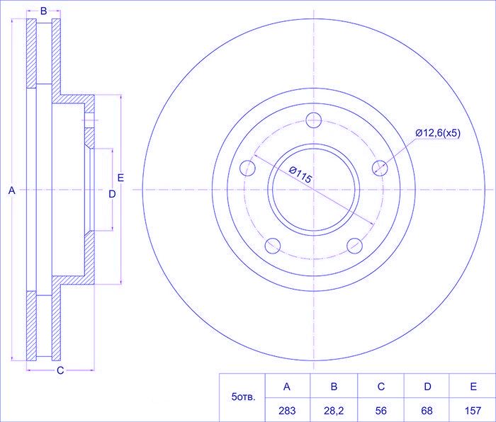 Диск тормозной /передний /TI-GUAR для Nissan NESSA N30 1996-2000; SERENA C24 1999-2000 2WD 4WD; 283/28мм; TG-40206-4N000; PD3212033S ST402064N000 402065V200 40206AD000