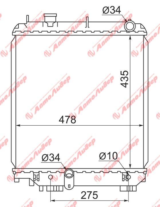 Радиатор охлаждения /AUTOLEADER для DYNA TOYOACE DUTRO 5L 2001- 1KDFTV 2K-FTV /без крышки; TY-KDY220LY220-1248; (TY0063) 164005B860 1640030200