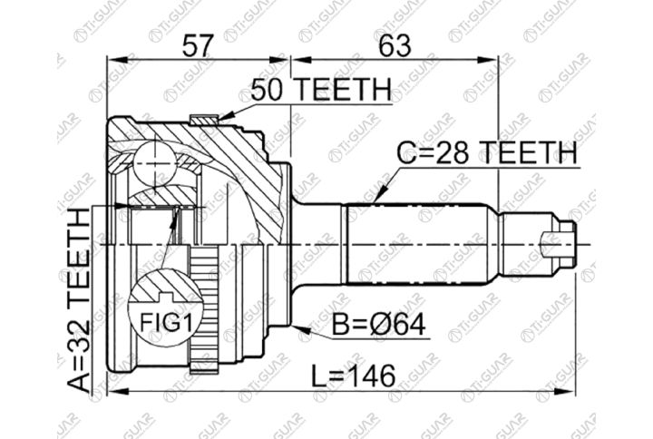 ШРУС наружный /TI-GUAR для Honda CR-V 1997-2000, Inspire (UA1/UA2) 1995-1998, Prelude 1996-2001 /ABS; 32*64*28; TG4433Z50; (HOE033A TG4433 HO033) HO33 HO033A50